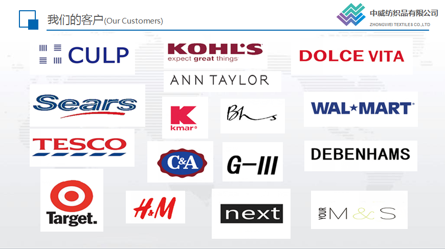 中威紡織主要經(jīng)營麂皮類家紡及各類服裝面里料,并可根據(jù)客戶要求研發(fā)、生產(chǎn)及深加工各類面料。公司產(chǎn)品遠銷美國、墨西哥、南美、歐洲等世界各地。公司自成立以來,憑著優(yōu)良的品質、合理的價格以及完善的服務,贏得了國內外客戶的信賴。目前公司已與世界眾多大品牌建立了良好的業(yè)務往來。